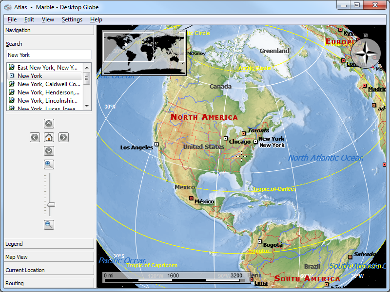 Marble is a Virtual Globe and World Atlas that you can use to learn more about Earth: You can pan and zoom around and you can look up places and roads. A mouse click on a place label will provide the respective Wikipedia article.Features